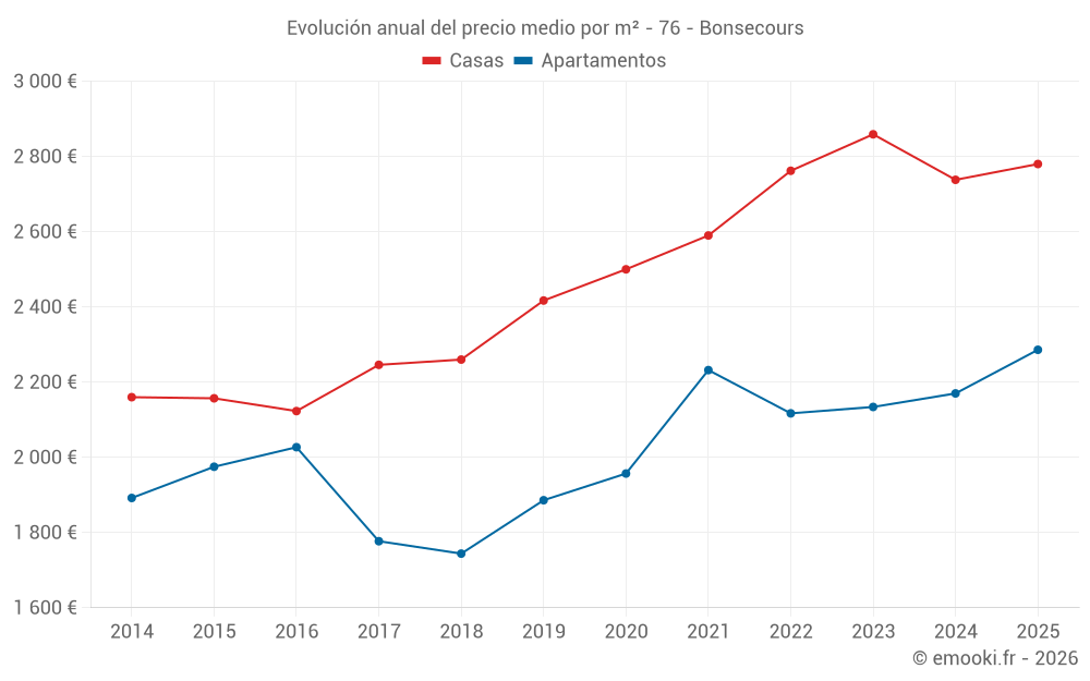 ¿Cuál es el precio por m2 de las casas en Bonsecours?