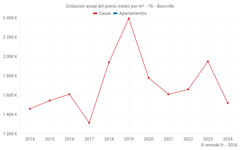 Evolución del precio medio por m² de las casas
