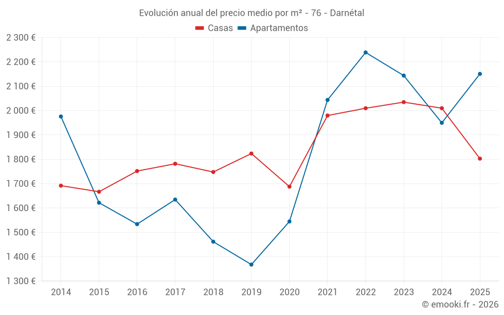 ¿Cuál es el precio por m2 de las casas en Darnétal?