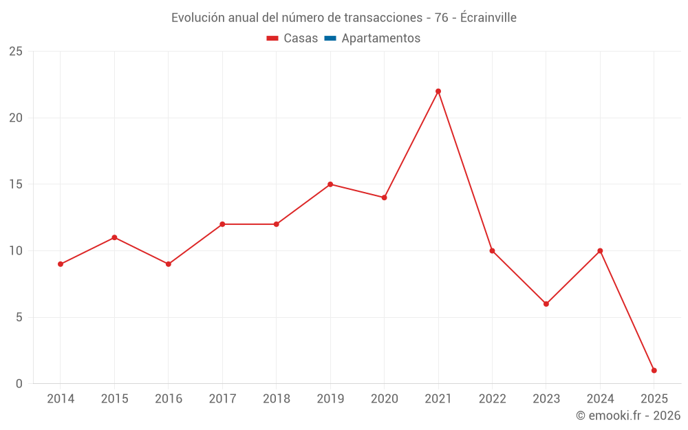 El precio mediano en las 15 transacciones de casas de los últimos 24 meses en la comuna de Écrainville fue de 2 688 € por metro cuadrado para un valor patrimonial medio de 230 000 €. Durante este período el 60% de las transacciones estuvieron entre 2 001 y 3 107 € por metro cuadrado (del 2º al 8º decil).