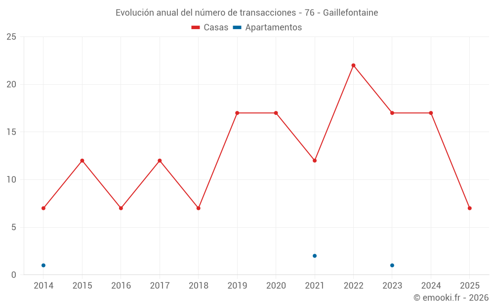 El precio mediano en las 16 transacciones de casas de los últimos 12 meses en la comuna de Gaillefontaine fue de 1 251 € por metro cuadrado para un valor patrimonial medio de 125 550 €. Durante este período el 60% de las transacciones estuvieron entre 533 y 1 685 € por metro cuadrado (del 2º al 8º decil).