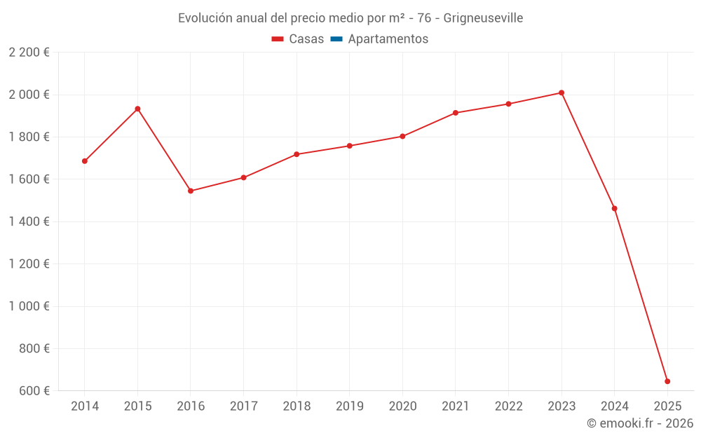 Evolución del precio medio por m² de las casas