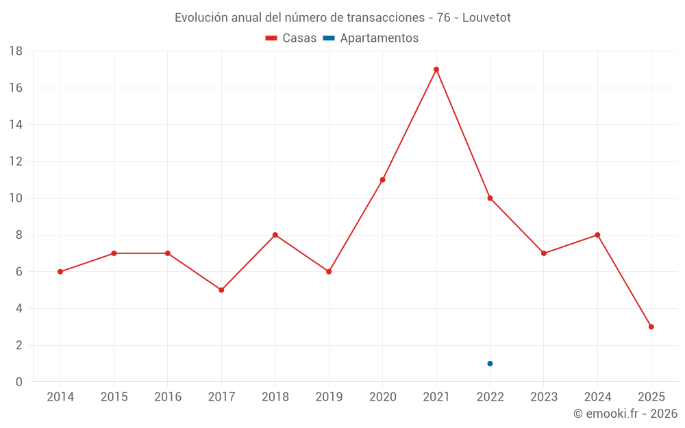El precio mediano en las 15 transacciones de casas de los últimos 24 meses en la comuna de Louvetot fue de 1 872 € por metro cuadrado para un valor patrimonial medio de 195 000 €. Durante este período el 60% de las transacciones estuvieron entre 1 590 y 2 157 € por metro cuadrado (del 2º al 8º decil).