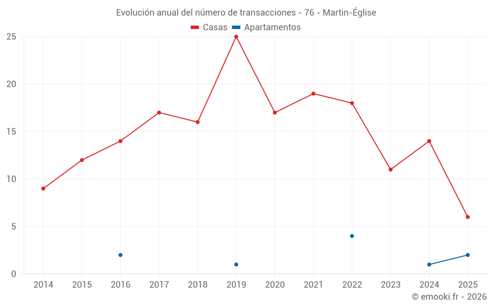 El precio mediano en las 24 transacciones de casas de los últimos 24 meses en la comuna de Martin-Église fue de 2 166 € por metro cuadrado para un valor patrimonial medio de 221 450 €. Durante este período el 60% de las transacciones estuvieron entre 1 723 y 2 631 € por metro cuadrado (del 2º al 8º decil).