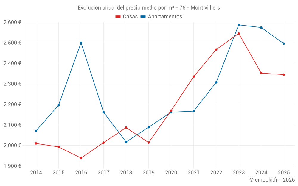 ¿Cuál es el precio por m2 de las casas en Montivilliers?