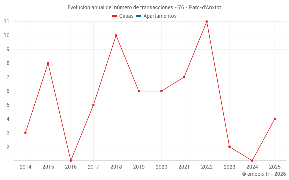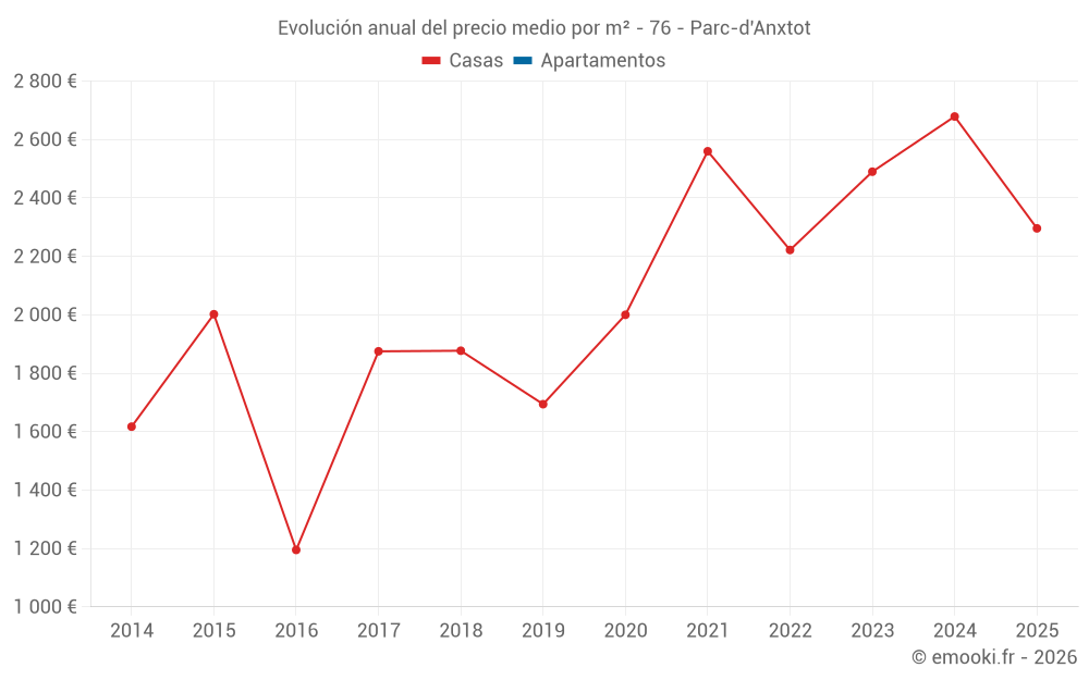 El precio por m² de las casas ha disminuido un 10% desde 4 años, pero ha aumentado un 36% en 6 años.