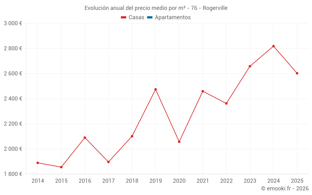 El precio mediano en las 25 transacciones de casas de los últimos 24 meses en la comuna de Rogerville fue de 2 656 € por metro cuadrado para un valor patrimonial medio de 228 000 €. Durante este período el 60% de las transacciones estuvieron entre 1 977 y 3 032 € por metro cuadrado (del 2º al 8º decil).