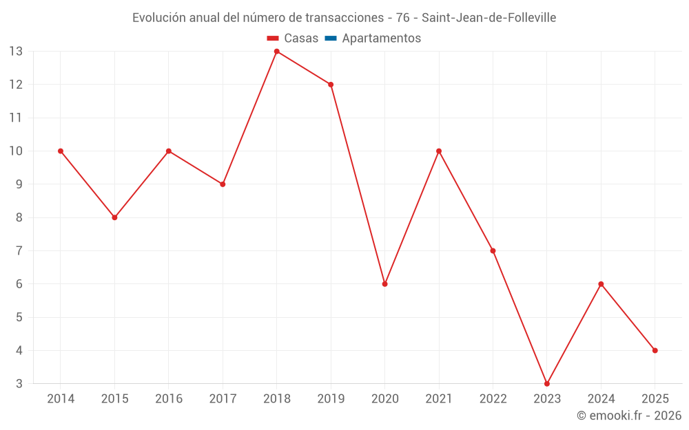 El precio por m² de las casas ha disminuido un 11% desde 5 años, pero ha aumentado un 53% en 7 años.