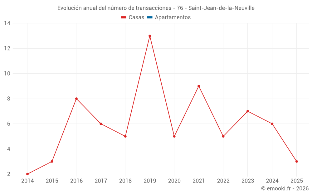 El precio mediano en las 14 transacciones de casas de los últimos 24 meses en la comuna de Saint-Jean-de-la-Neuville fue de 2 072 € por metro cuadrado para un valor patrimonial medio de 183 000 €. Durante este período el 60% de las transacciones estuvieron entre 1 691 y 2 378 € por metro cuadrado (del 2º al 8º decil).