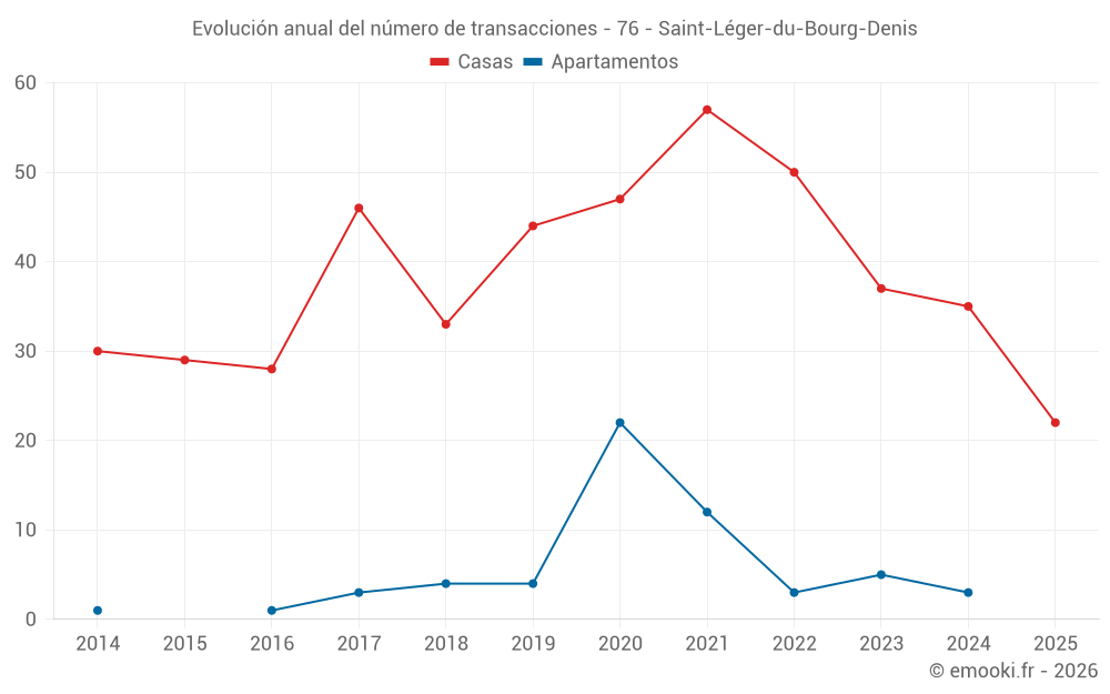El precio mediano en las 22 transacciones de casas de los últimos 6 meses en la comuna de Saint-Léger-du-Bourg-Denis fue de 2 298 € por metro cuadrado para un valor patrimonial medio de 185 000 €. Durante este período el 60% de las transacciones estuvieron entre 1 834 y 2 661 € por metro cuadrado (del 2º al 8º decil).