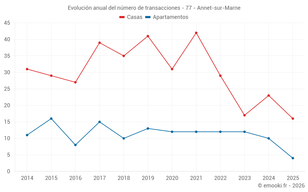 El precio mediano en las 20 transacciones de apartamentos de los últimos 24 meses en la comuna de Annet-sur-Marne fue de 3 997 € por metro cuadrado para un valor patrimonial medio de 170 635 €. Durante este período el 60% de las transacciones estuvieron entre 3 451 y 4 423 € por metro cuadrado (del 2º al 8º decil).