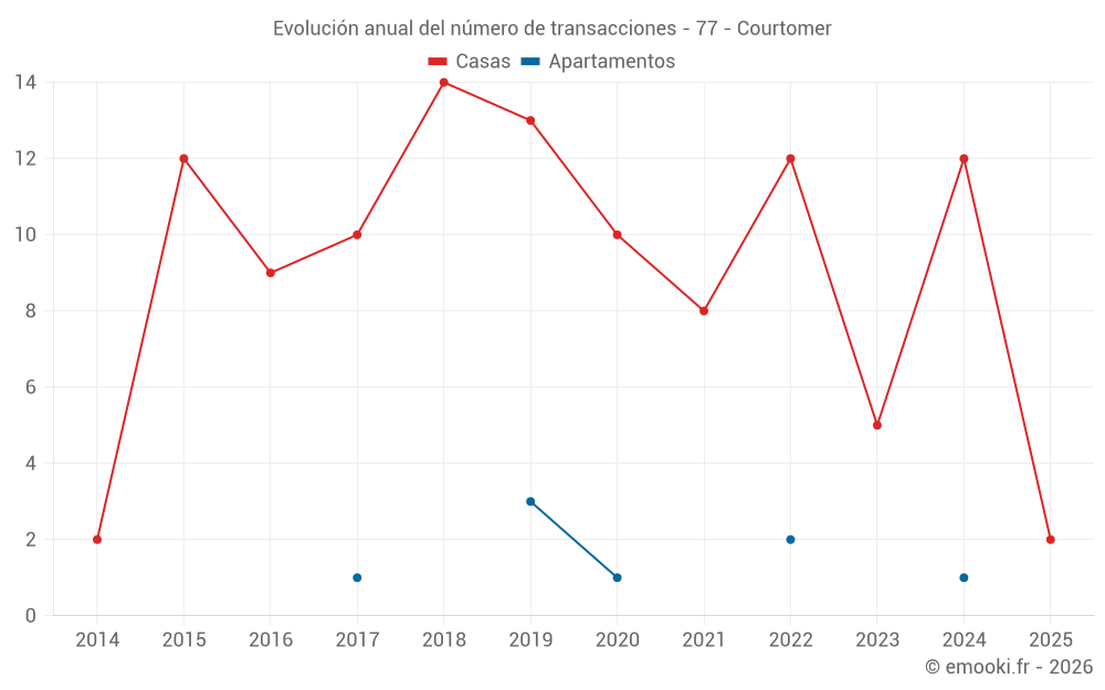El precio mediano en las 16 transacciones de casas de los últimos 24 meses en la comuna de Courtomer fue de 2 514 € por metro cuadrado para un valor patrimonial medio de 269 000 €. Durante este período el 60% de las transacciones estuvieron entre 2 179 y 2 778 € por metro cuadrado (del 2º al 8º decil).