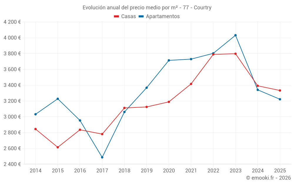 ¿Cuál es el precio por m2 de los apartamentos en Courtry?