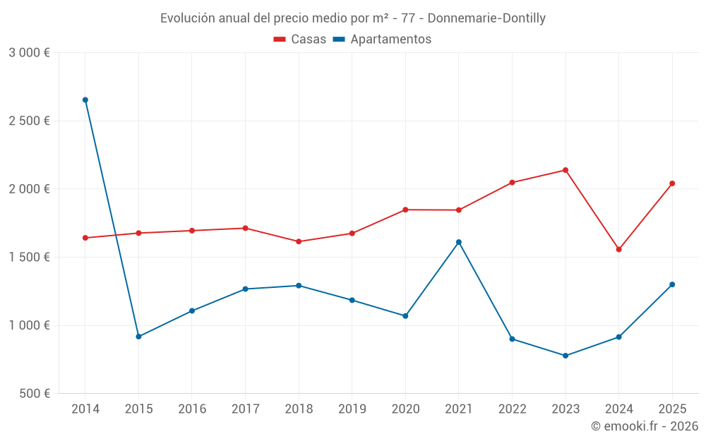 ¿Cuál es el precio por m2 de las casas en Donnemarie-Dontilly?