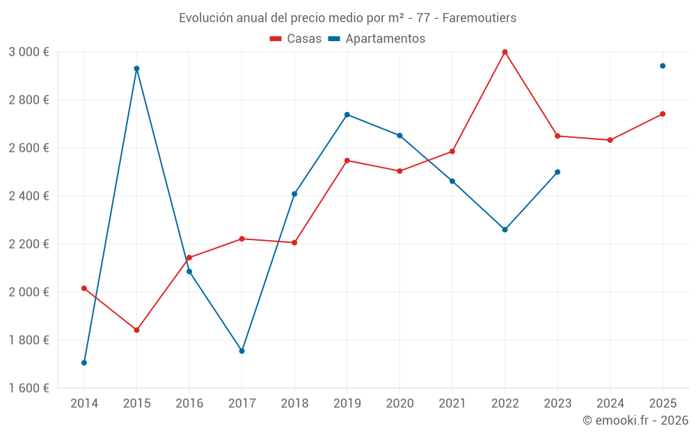 ¿Cuál es el precio por m2 de las casas en Faremoutiers?