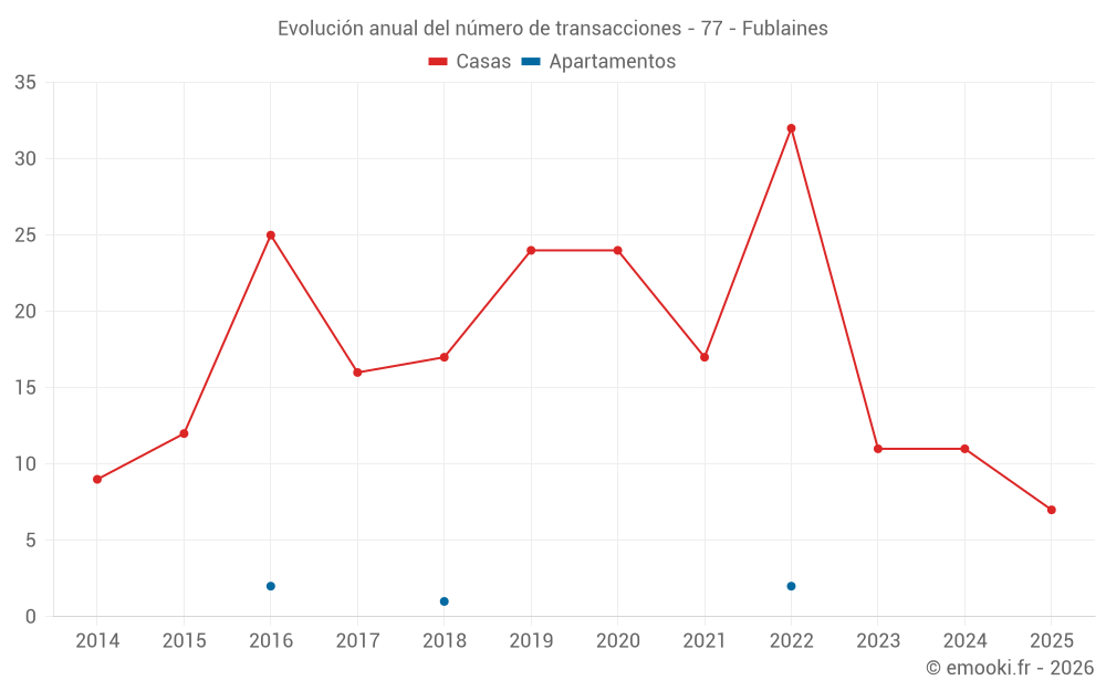 El precio mediano en las 24 transacciones de casas de los últimos 24 meses en la comuna de Fublaines fue de 2 852 € por metro cuadrado para un valor patrimonial medio de 268 500 €. Durante este período el 60% de las transacciones estuvieron entre 2 448 y 3 452 € por metro cuadrado (del 2º al 8º decil).