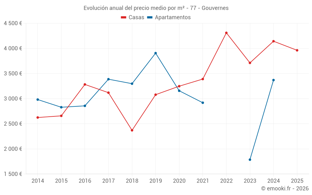 ¿Cuál es el precio por m2 de las casas en Gouvernes?