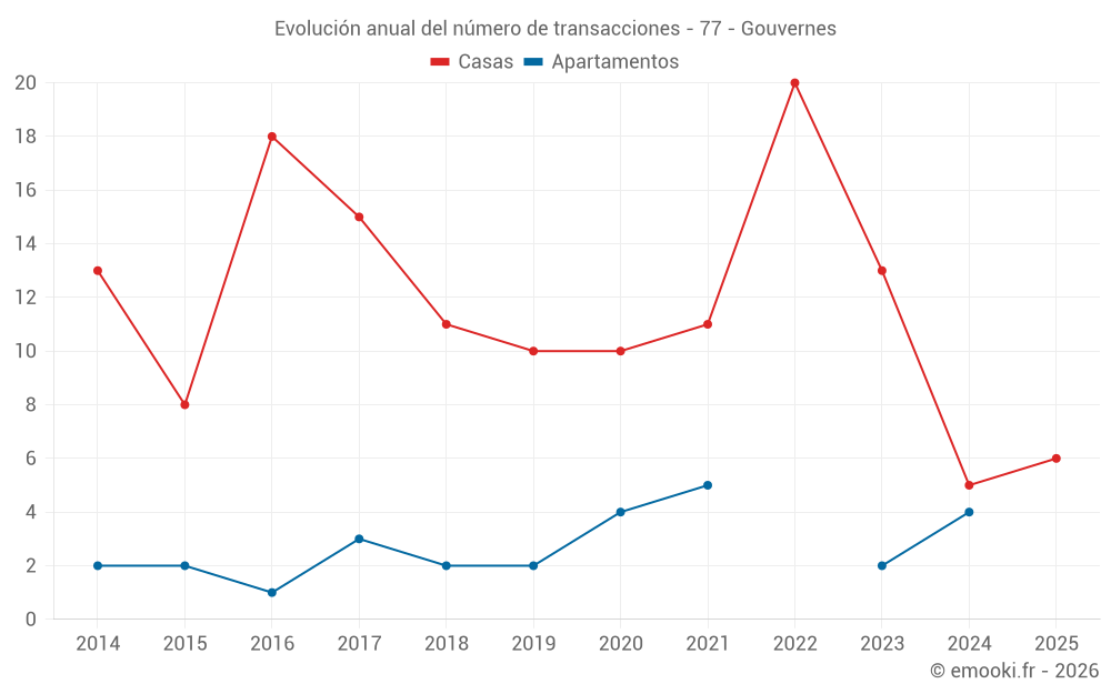 El precio mediano en las 14 transacciones de casas de los últimos 24 meses en la comuna de Gouvernes fue de 3 918 € por metro cuadrado para un valor patrimonial medio de 560 750 €. Durante este período el 60% de las transacciones estuvieron entre 3 437 y 4 987 € por metro cuadrado (del 2º al 8º decil).