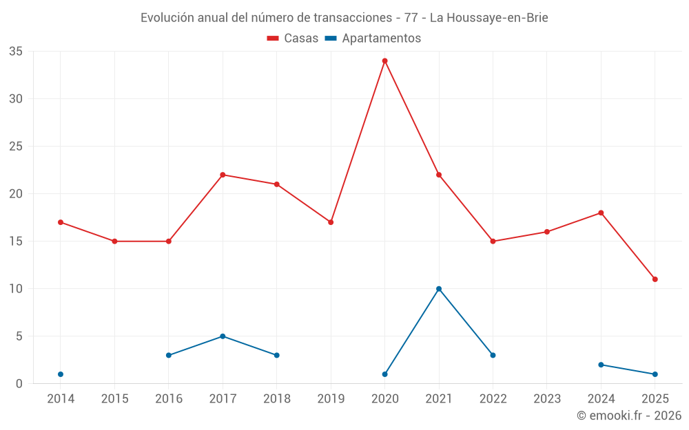 El precio mediano en las 18 transacciones de casas de los últimos 12 meses en la comuna de La Houssaye-en-Brie fue de 3 046 € por metro cuadrado para un valor patrimonial medio de 314 950 €. Durante este período el 60% de las transacciones estuvieron entre 2 317 y 3 521 € por metro cuadrado (del 2º al 8º decil).