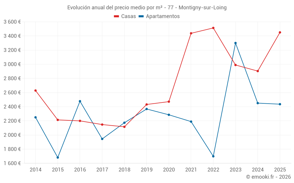 ¿Cuál es el precio por m2 de las casas en Montigny-sur-Loing?