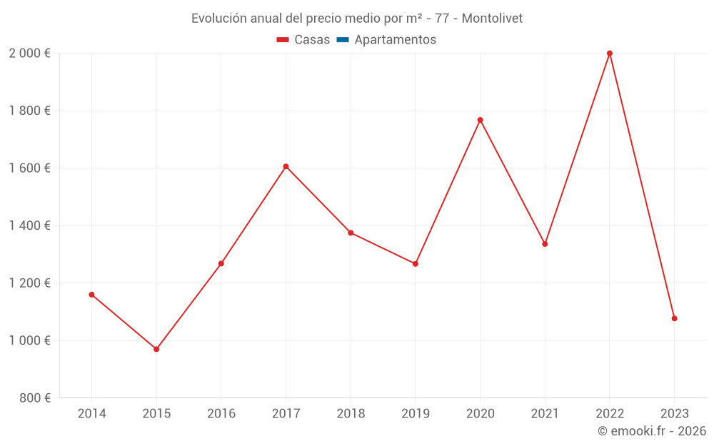 Evolución del precio medio por m² de las casas