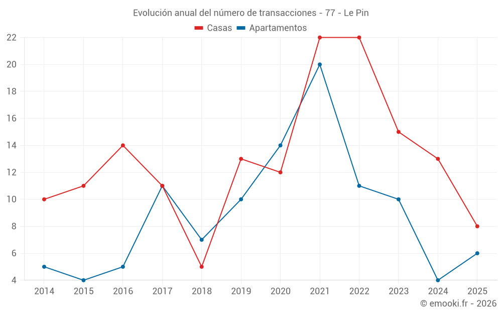 El precio mediano en las 15 transacciones de apartamentos de los últimos 24 meses en la comuna de Le Pin fue de 3 750 € por metro cuadrado para un valor patrimonial medio de 195 000 €. Durante este período el 60% de las transacciones estuvieron entre 3 302 y 4 030 € por metro cuadrado (del 2º al 8º decil).