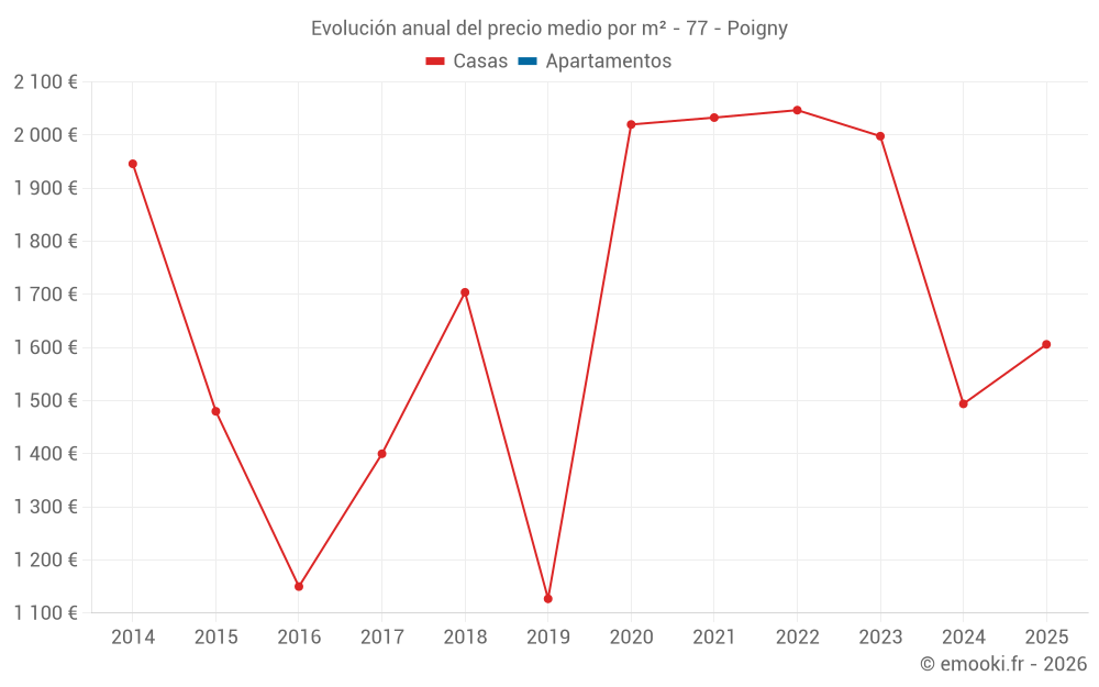 El precio por m² de las casas ha aumentado un 7.5% desde 1 año, pero ha disminuido un 22% en 3 años.