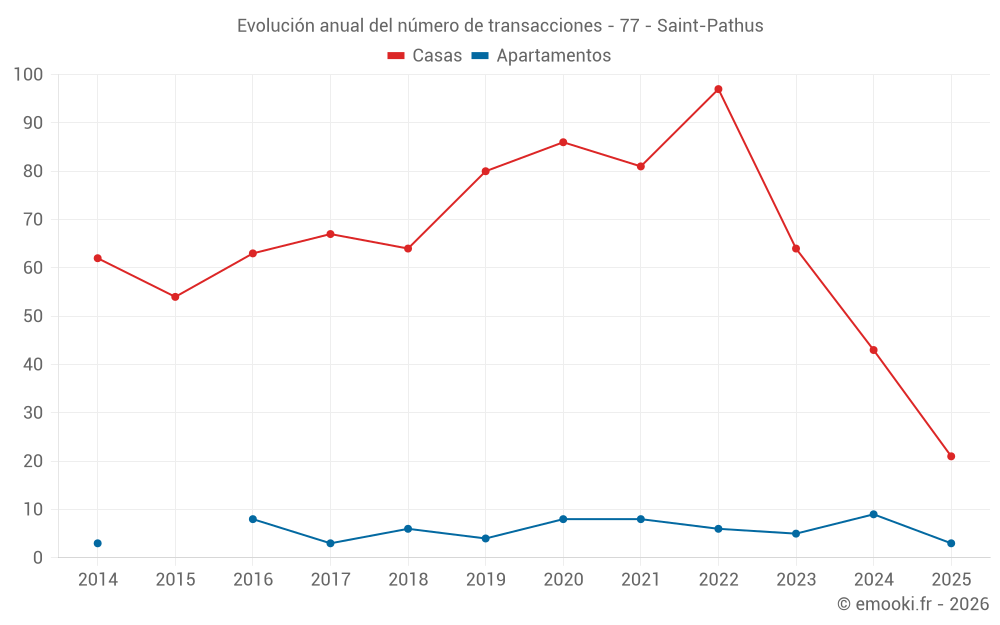 El precio mediano en las 14 transacciones de apartamentos de los últimos 24 meses en la comuna de Saint-Pathus fue de 2 562 € por metro cuadrado para un valor patrimonial medio de 127 500 €. Durante este período el 60% de las transacciones estuvieron entre 1 988 y 2 893 € por metro cuadrado (del 2º al 8º decil).