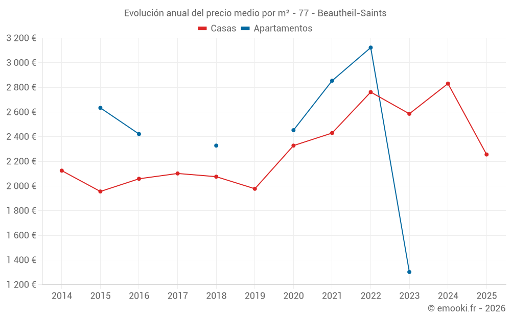 ¿Cuál es el precio por m2 de las casas en Beautheil-Saints?