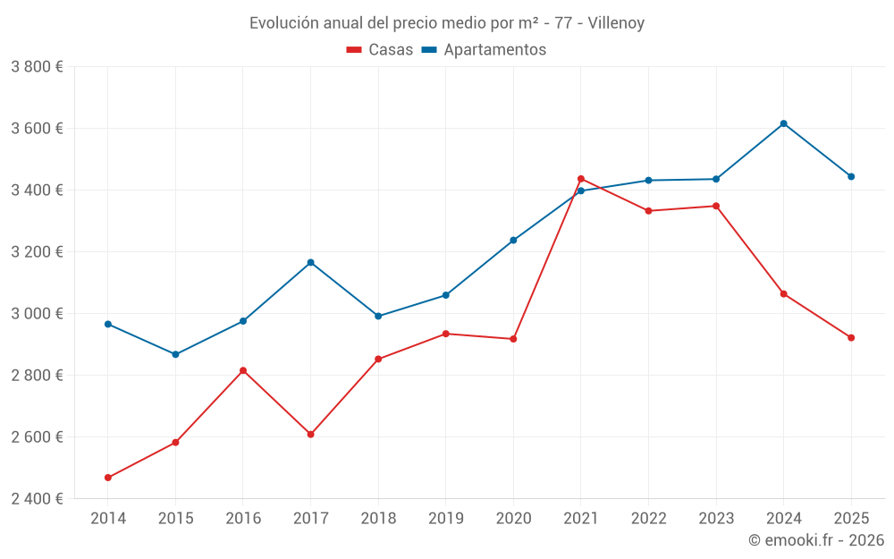 ¿Cuál es el precio por m2 de las casas en Villenoy?