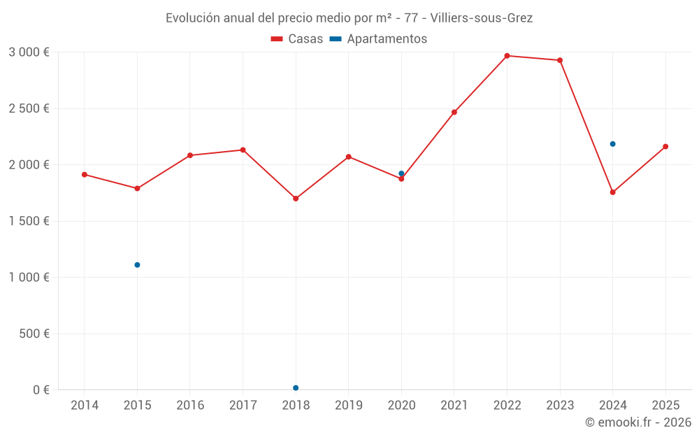 ¿Cuál es el precio por m2 de las casas en Villiers-sous-Grez?