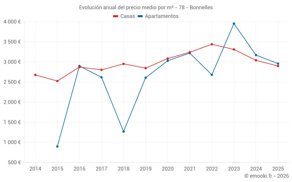 ¿Cuál es el precio por m2 de las casas en Bonnelles?