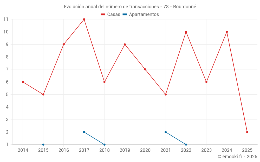 El precio mediano en las 17 transacciones de casas de los últimos 24 meses en la comuna de Bourdonné fue de 2 973 € por metro cuadrado para un valor patrimonial medio de 420 100 €. Durante este período el 60% de las transacciones estuvieron entre 2 127 y 4 194 € por metro cuadrado (del 2º al 8º decil).