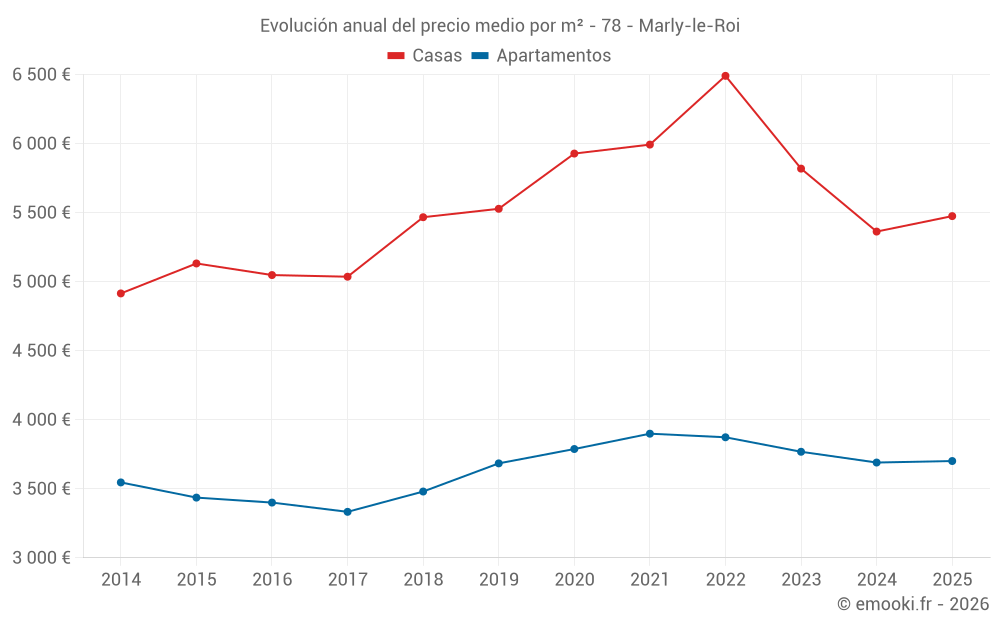 ¿Cuál es el precio por m2 de las casas en Marly-le-Roi?