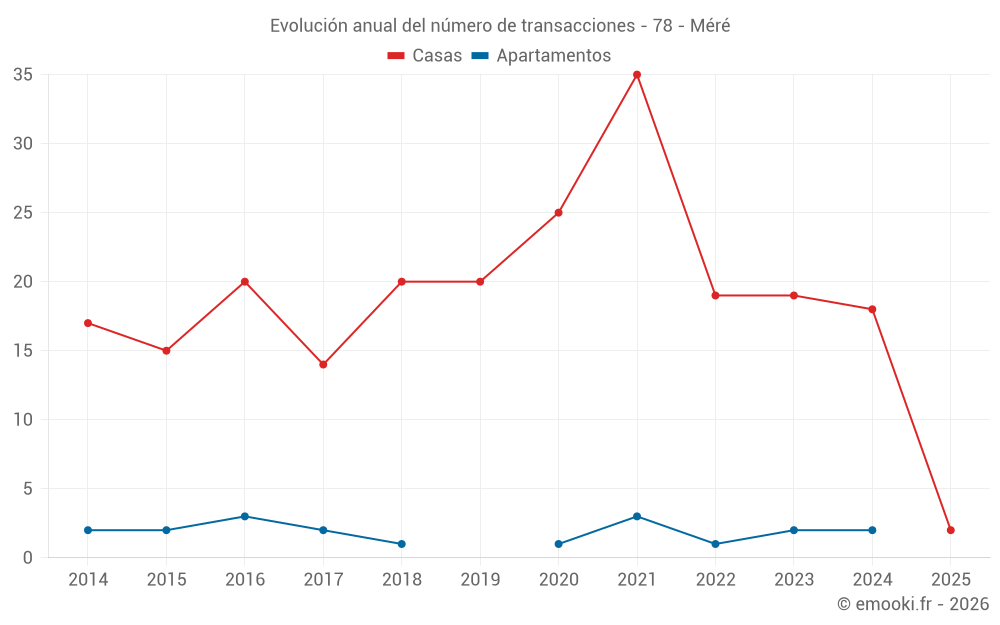 El precio mediano en las 27 transacciones de casas de los últimos 24 meses en la comuna de Méré fue de 4 147 € por metro cuadrado para un valor patrimonial medio de 473 000 €. Durante este período el 60% de las transacciones estuvieron entre 3 381 y 4 955 € por metro cuadrado (del 2º al 8º decil).