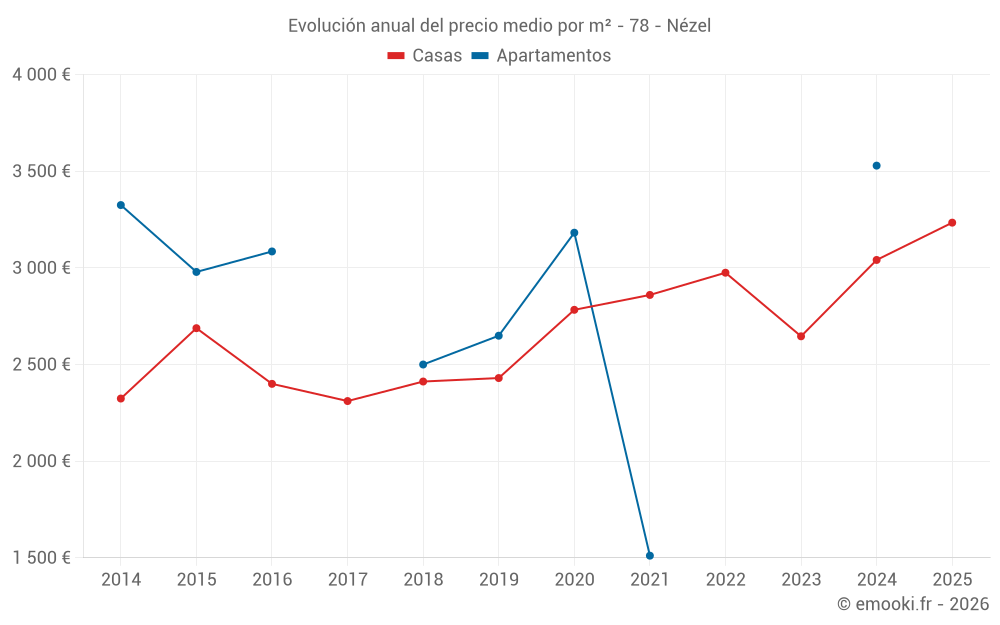 ¿Cuál es el precio por m2 de las casas en Nézel?