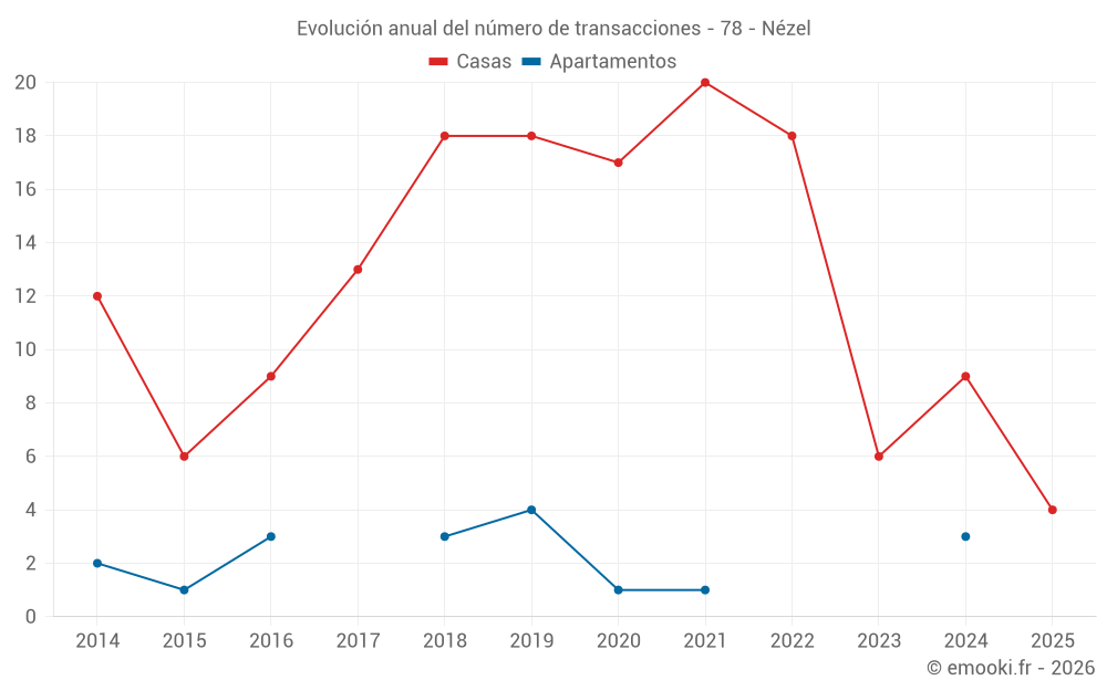 El precio mediano en las 17 transacciones de casas de los últimos 24 meses en la comuna de Nézel fue de 3 106 € por metro cuadrado para un valor patrimonial medio de 292 000 €. Durante este período el 60% de las transacciones estuvieron entre 2 565 y 4 236 € por metro cuadrado (del 2º al 8º decil).