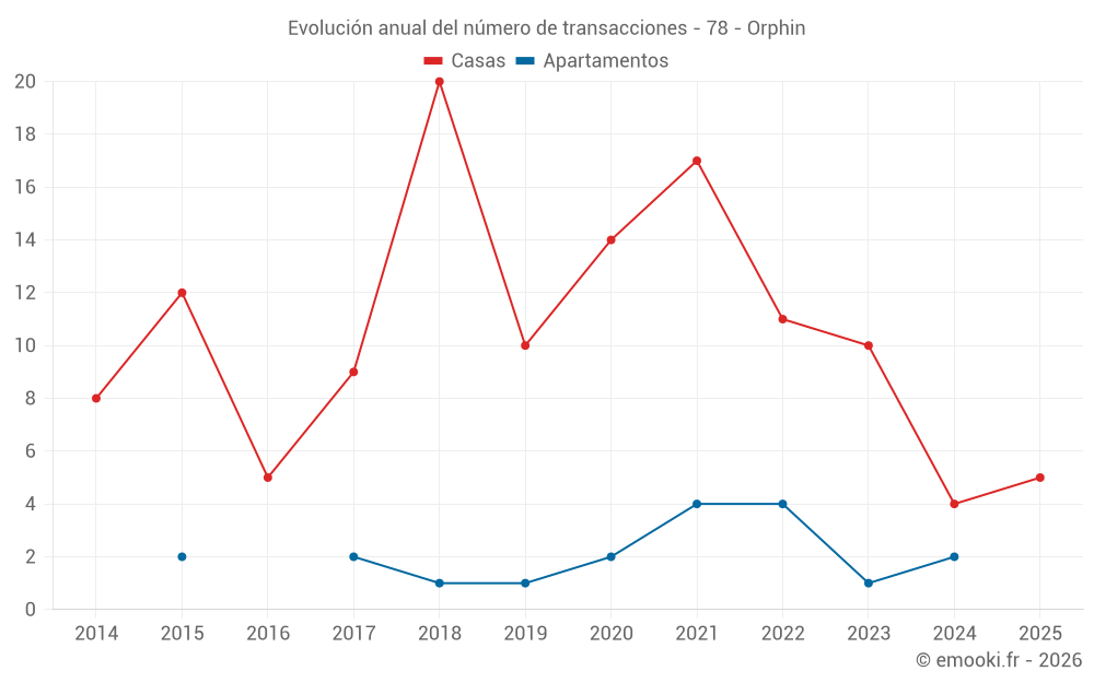 El precio mediano en las 15 transacciones de casas de los últimos 24 meses en la comuna de Orphin fue de 3 010 € por metro cuadrado para un valor patrimonial medio de 328 100 €. Durante este período el 60% de las transacciones estuvieron entre 2 716 y 3 477 € por metro cuadrado (del 2º al 8º decil).