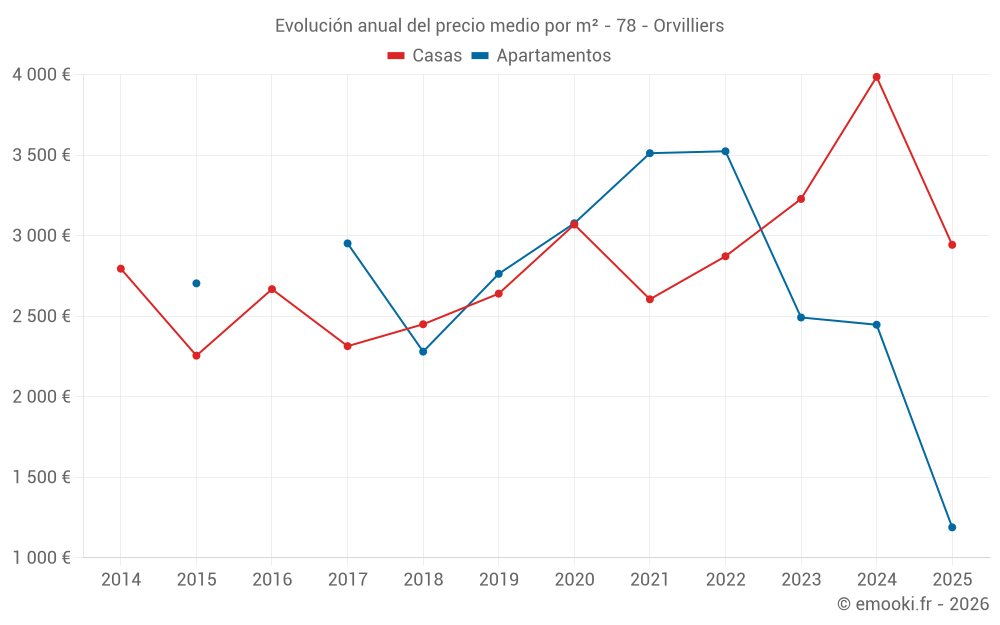 ¿Cuál es el precio por m2 de las casas en Orvilliers?