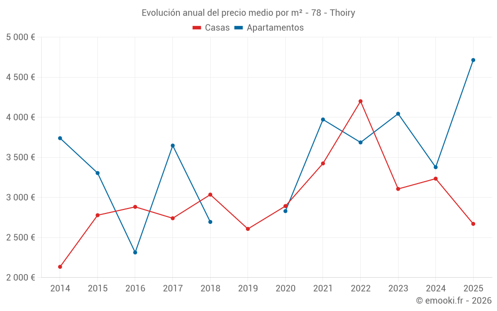 El precio mediano en las 18 transacciones de casas de los últimos 24 meses en la comuna de Thoiry fue de 3 230 € por metro cuadrado para un valor patrimonial medio de 354 500 €. Durante este período el 60% de las transacciones estuvieron entre 2 520 y 3 653 € por metro cuadrado (del 2º al 8º decil).
