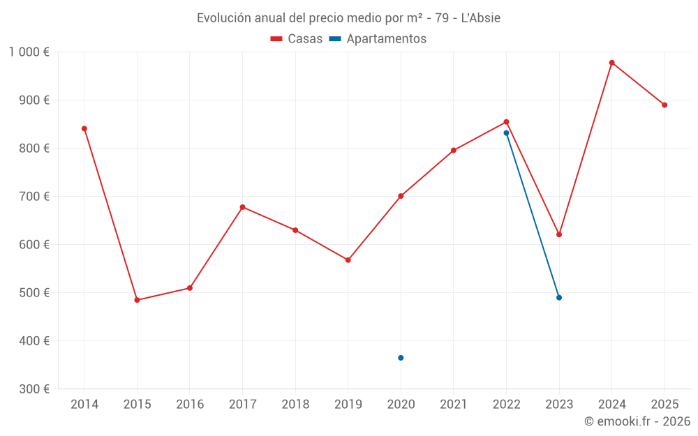 ¿Cuál es el precio por m2 de las casas en L'Absie?
