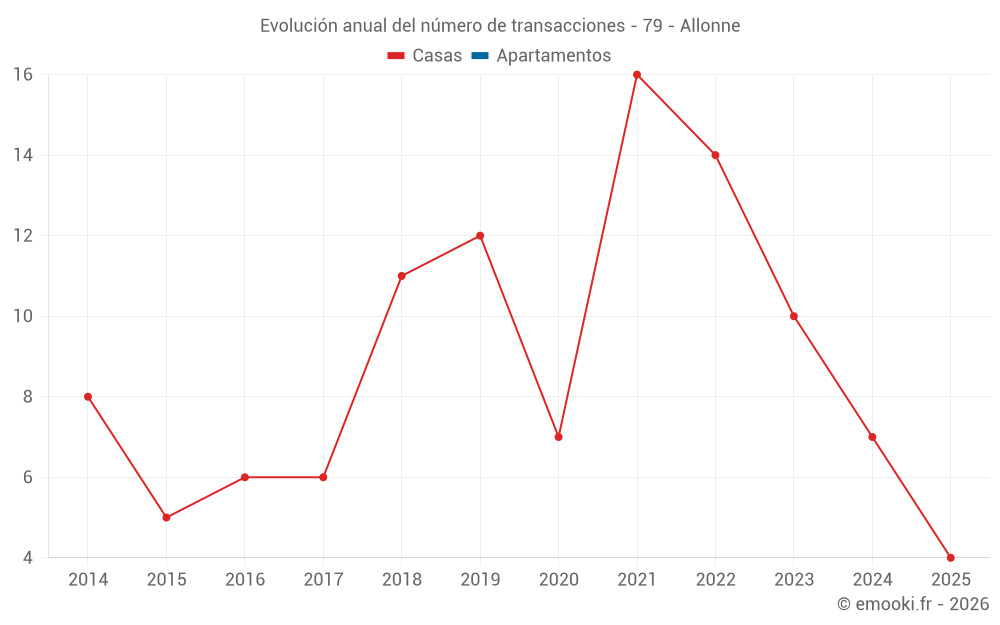El precio mediano en las 15 transacciones de casas de los últimos 24 meses en la comuna de Allonne fue de 1 026 € por metro cuadrado para un valor patrimonial medio de 124 560 €. Durante este período el 60% de las transacciones estuvieron entre 553 y 1 522 € por metro cuadrado (del 2º al 8º decil).