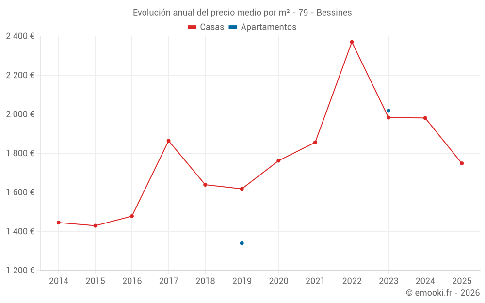 Evolución del precio medio por m² de las casas