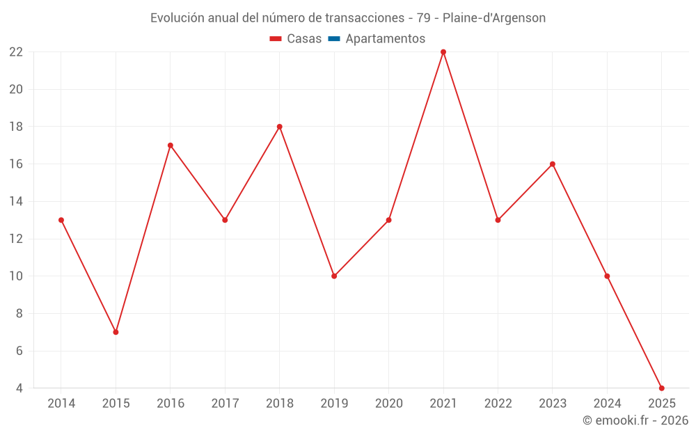 El precio mediano en las 24 transacciones de casas de los últimos 24 meses en la comuna de Plaine-d'Argenson fue de 1 140 € por metro cuadrado para un valor patrimonial medio de 136 855 €. Durante este período el 60% de las transacciones estuvieron entre 829 y 1 689 € por metro cuadrado (del 2º al 8º decil).