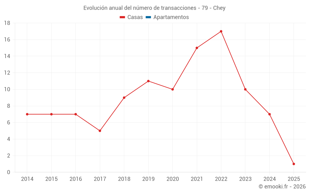 El precio mediano en las 14 transacciones de casas de los últimos 24 meses en la comuna de Chey fue de 854 € por metro cuadrado para un valor patrimonial medio de 84 818 €. Durante este período el 60% de las transacciones estuvieron entre 418 y 1 122 € por metro cuadrado (del 2º al 8º decil).