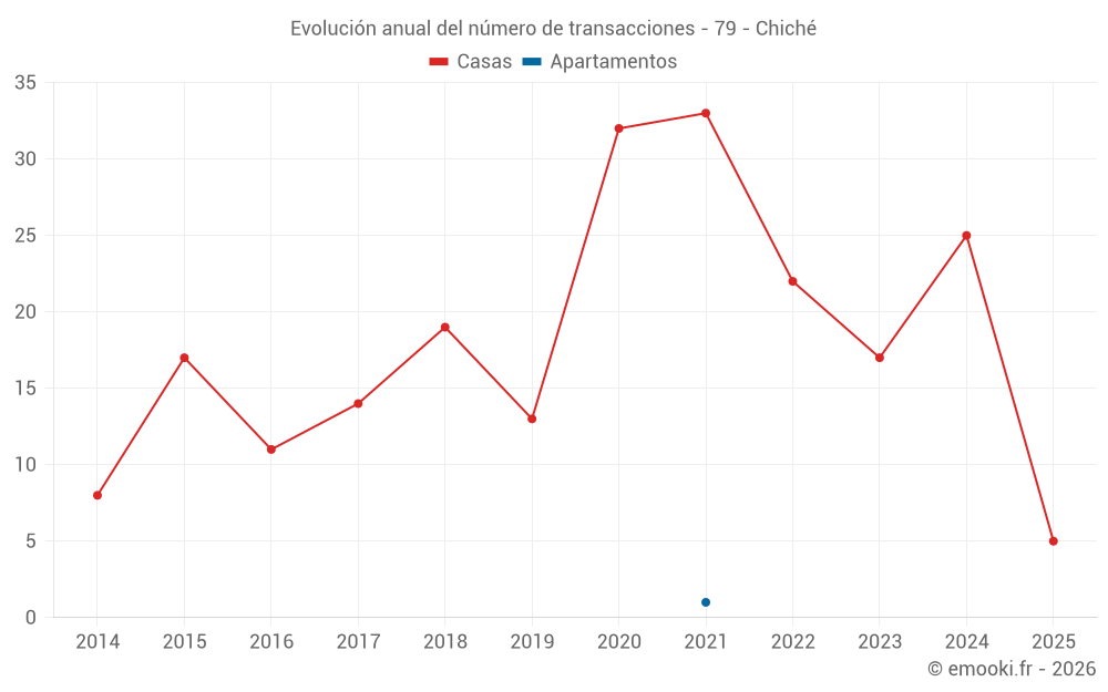 El precio mediano en las 23 transacciones de casas de los últimos 12 meses en la comuna de Chiché fue de 1 154 € por metro cuadrado para un valor patrimonial medio de 104 300 €. Durante este período el 60% de las transacciones estuvieron entre 706 y 1 465 € por metro cuadrado (del 2º al 8º decil).
