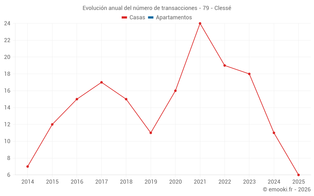 El precio mediano en las 26 transacciones de casas de los últimos 24 meses en la comuna de Clessé fue de 960 € por metro cuadrado para un valor patrimonial medio de 98 530 €. Durante este período el 60% de las transacciones estuvieron entre 529 y 1 300 € por metro cuadrado (del 2º al 8º decil).