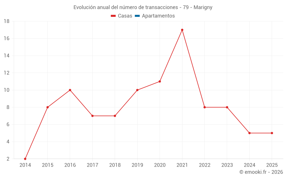 El precio mediano en las 14 transacciones de casas de los últimos 24 meses en la comuna de Marigny fue de 1 554 € por metro cuadrado para un valor patrimonial medio de 158 000 €. Durante este período el 60% de las transacciones estuvieron entre 985 y 1 868 € por metro cuadrado (del 2º al 8º decil).