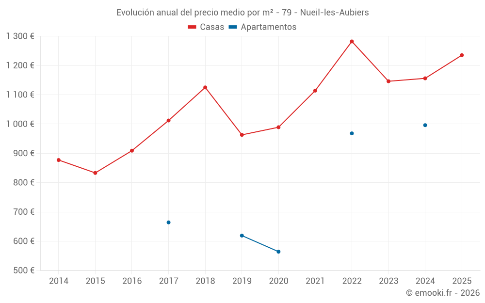 ¿Cuál es el precio por m2 de las casas en Nueil-les-Aubiers?