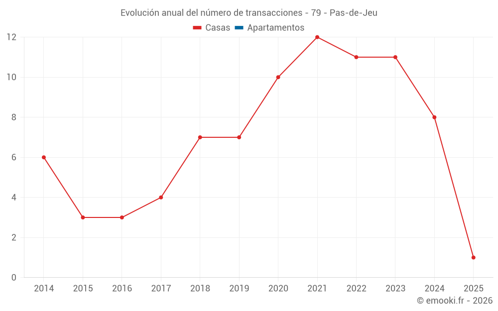 El precio mediano en las 15 transacciones de casas de los últimos 24 meses en la comuna de Pas-de-Jeu fue de 821 € por metro cuadrado para un valor patrimonial medio de 85 000 €. Durante este período el 60% de las transacciones estuvieron entre 365 y 1 468 € por metro cuadrado (del 2º al 8º decil).